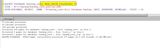 WITH NOFORMAT, NOINIT, NAME = N’backup_test_db-Full Database Backup’, SKIP, NOREWIND, NOUNLOAD, STATS = 10